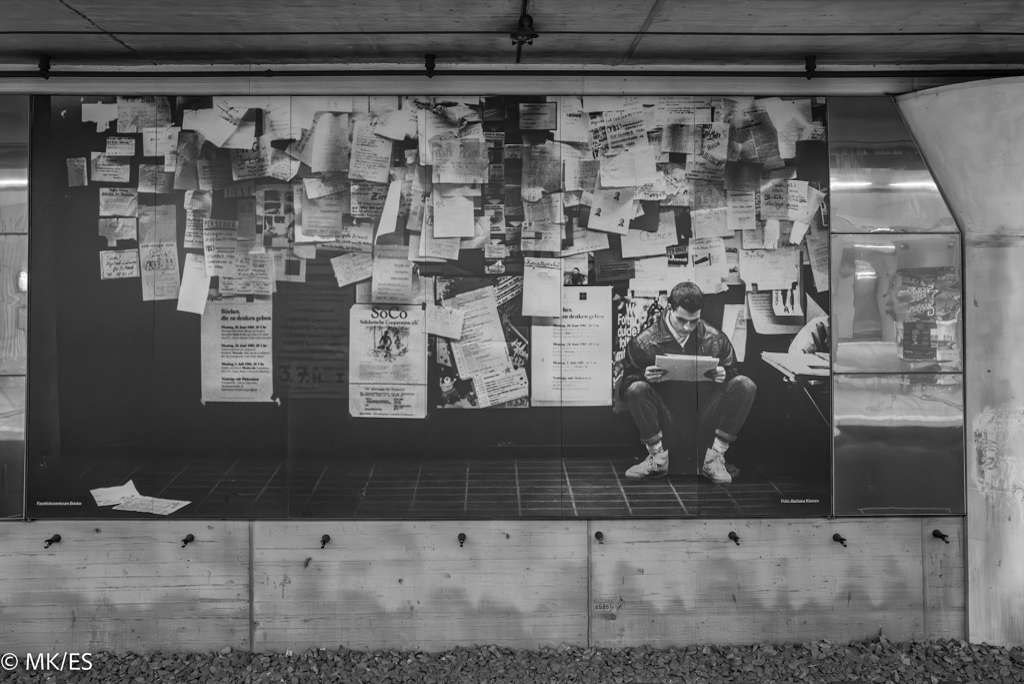 Seit 1986 sind in der Frankfurter U-Bahnstation Bockenheimer Warte insgesamt 15 Aufnahmen der Fotografin Barbara Klemm zu sehen. In den Jahren 2023/24 haben wir als von der Stiftung Polytechnische Gesellschaft geförderte Stadtteil-Historiker der Entstehungsgeschichte dieser Fotos nachgeforscht. Auf diesen Seiten stellen wir die Ergebnisse unserer Recherchen vor. (Per Klick auf ein Foto erscheint der Bericht zum jeweiligen Motiv.)